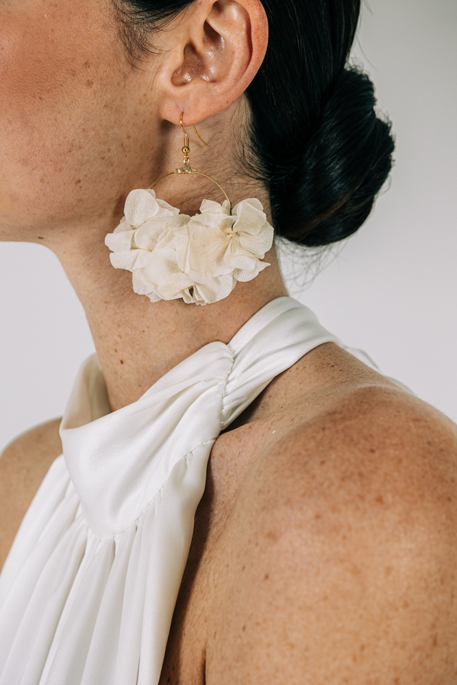 Ornées de délicates pétales d’hortensia stabilisées, les Boucles d’oreilles Maria donneront du caractère à votre silhouette. Initialement conçues sur un diamètre de créole 5cm, nous vous proposons également la paire de boucles Maria au format 4cm pour les mariées qui aiment les boucles d’oreilles créoles mais ne souhaitent pas une pièce trop imposante.