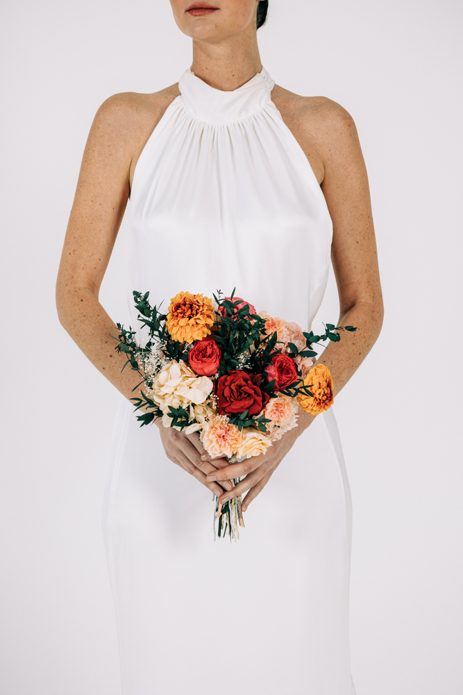 Fabriqué à la main dans nos ateliers, le bouquet de mariée Orangeade est conçu pour durer dans le temps, vous offrant un souvenir impérissable de votre mariage bohème, romantique ou champêtre. Ses teintes éclatantes et naturelles s’accordent aussi bien avec une robe de mariée minimaliste qu’avec une tenue plus sophistiquée.